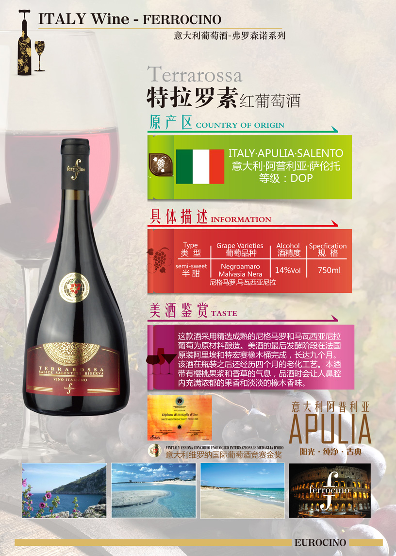 產(chǎn)區(qū):薩倫托 SALENTO??????等級(jí):DOP