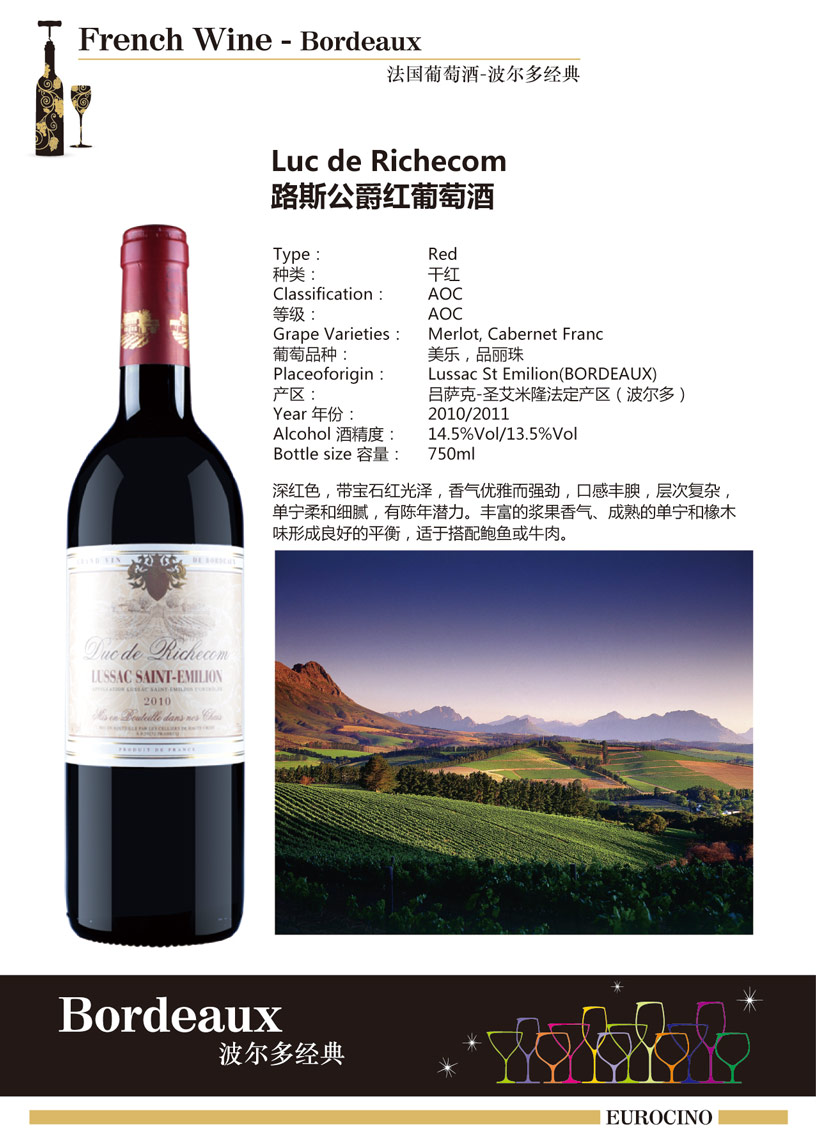 產(chǎn)區(qū):呂薩克-圣艾米利永(Lussac St Emilion) 等級(jí):AOC